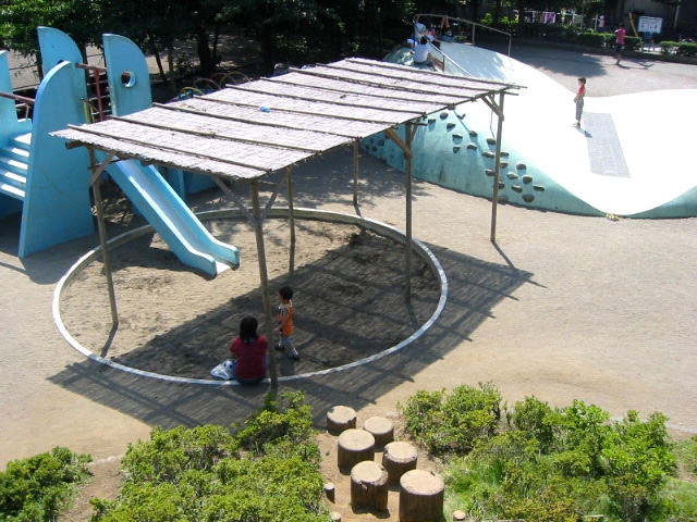 ここは大きな石の滑り台、くねくねしたジャングルジムに小さい石の滑り台など遊具は多い方ではありませんが、一つ一つが変わった造りだったのが印象的です。