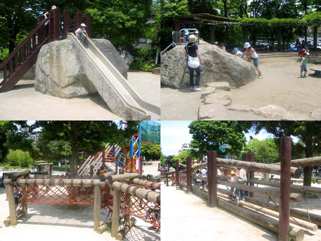 岩の滑り台なんかは後ろ側にチェーンが付いていて、登れるようになっていました。手足が鍛えられて、楽しめます。