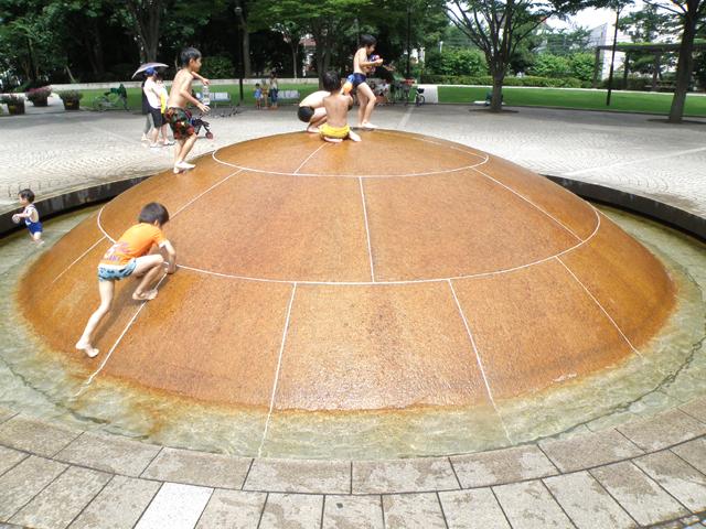 その半球の天辺が『湧泉』になっていて、子供達が本当に楽しそうに湧泉と一緒に登ったり滑り落ちたりしています。
