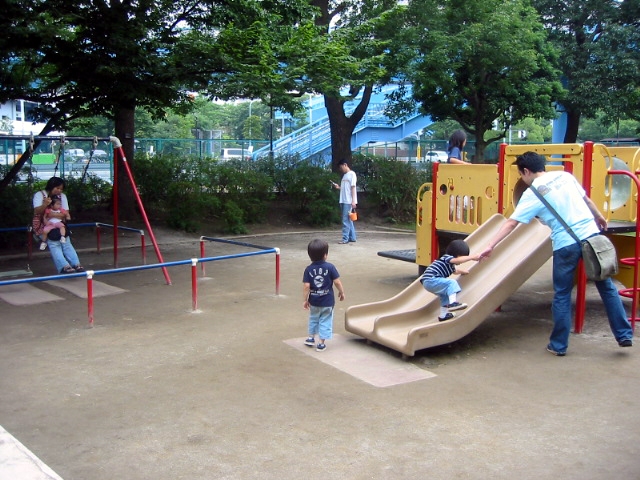 横に長く広々とした公園ですが廻りが大通りに囲まれているので子供の飛び出しには気を付けてくださいね。
